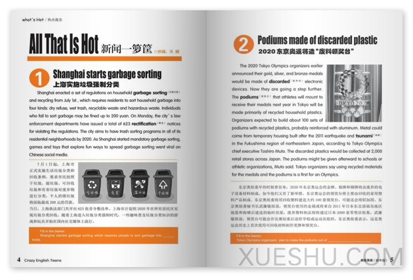《瘋狂英語小學(xué)版》主要欄目:童聲童唱、閱讀周計(jì)劃、作文秀場、我也來說說等。