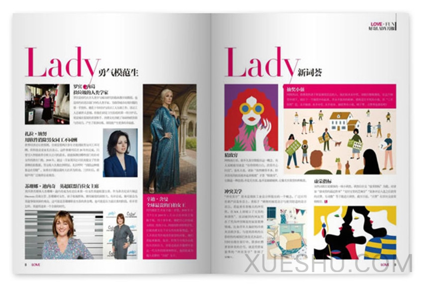 《女友》(月刊)經(jīng)過多年的不懈努力,流行度高,大眾辨識度廣,創(chuàng)刊于1988年,開拓了視野,帶給讀者富有生活特色的內(nèi)容。以新的著眼點(diǎn)挖掘問題的新說法、適讀人群:白領(lǐng)麗人、潮流人群、時尚女性等等。“女友”所倡導(dǎo)的愛是大愛,是愛心、關(guān)愛、博愛、人情之愛、生命平等的互愛、對地球環(huán)境的關(guān)愛等,這是現(xiàn)代人精神時尚的一部分。