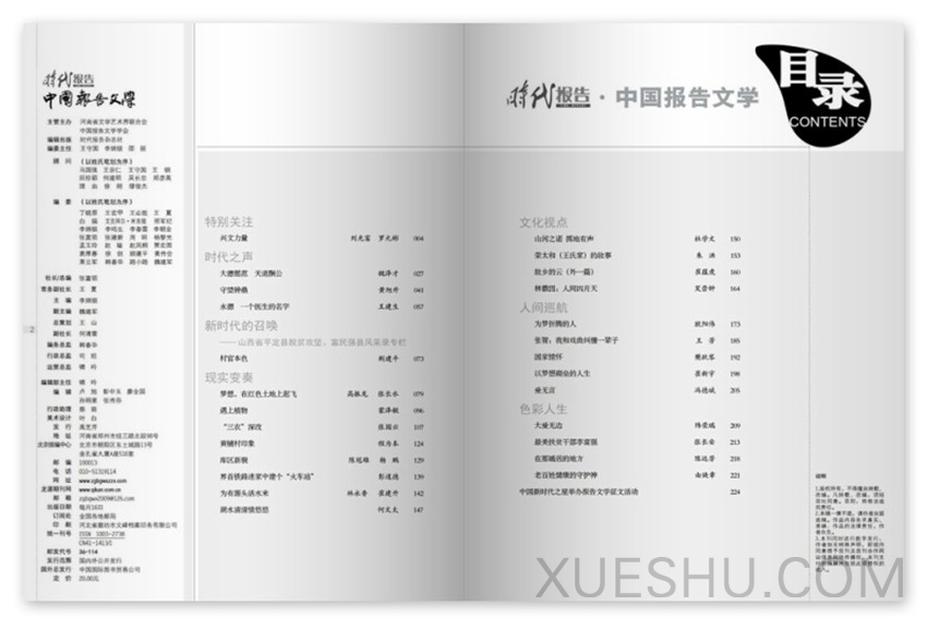 《時代報告·中國報告文學(xué)》(月刊)經(jīng)過多年的不懈努力,流行度高,大眾辨識度廣,創(chuàng)刊于2009年,開拓了視野,帶給讀者富有生活特色的內(nèi)容,緊扣時代脈搏,傳達民眾心聲、張揚人間正氣。
