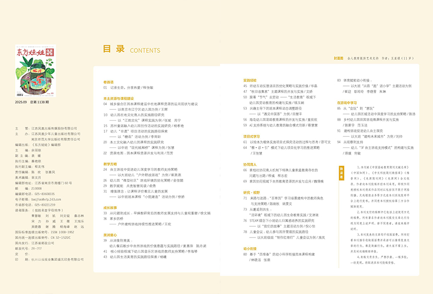 《東方娃娃保育與教育》雜志涵蓋了兒童保育和教育的多個領域,包括兒童心理發展、教育政策解讀、課程設計等。這些內容為專業人士提供了豐富的研究素材和參考依據,有助于他們開展更深入的研究工作,為兒童教育領域的發展貢獻智慧。雜志的特色在于它獨特的文化視角。它立足于深厚的東方文化根基。東方文化強調家庭的和諧、尊老愛幼的傳統美德以及對教育的重視。這些文化元素在兒童的成長過程中起著至關重要的作用。例如,中國的傳統節日文化,如春節、中秋節等,為孩子們提供了豐富的文化體驗和情感教育。通過這些節日,孩子們可以感受到家庭的溫暖和文化的傳承,培養他們的歸屬感和文化認同感。