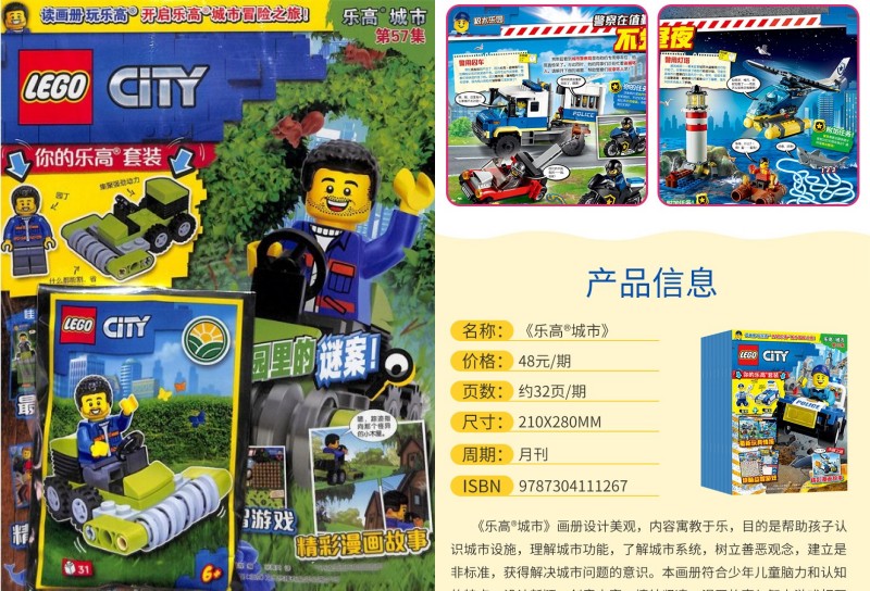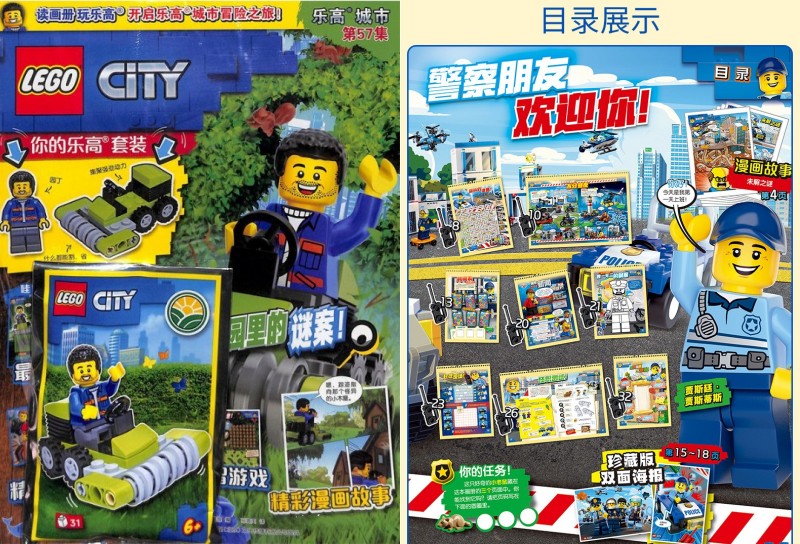 《樂高城市》主要欄目:雜志、特刊、漫畫故事、漫畫故事特刊、貼紙、福袋等。