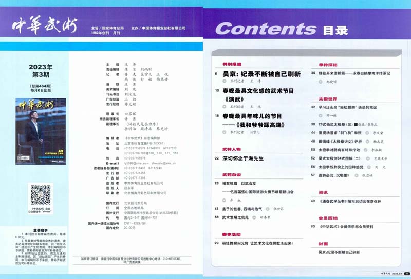 深入采訪有關武術門派的傳承人和知名武術家,評介各路名家在武術領域的最新動態,為讀者展示中華武術的精髓,以及傳承人在保護中華武術寶庫、傳播中華武術文化等方面所付出的努力。
