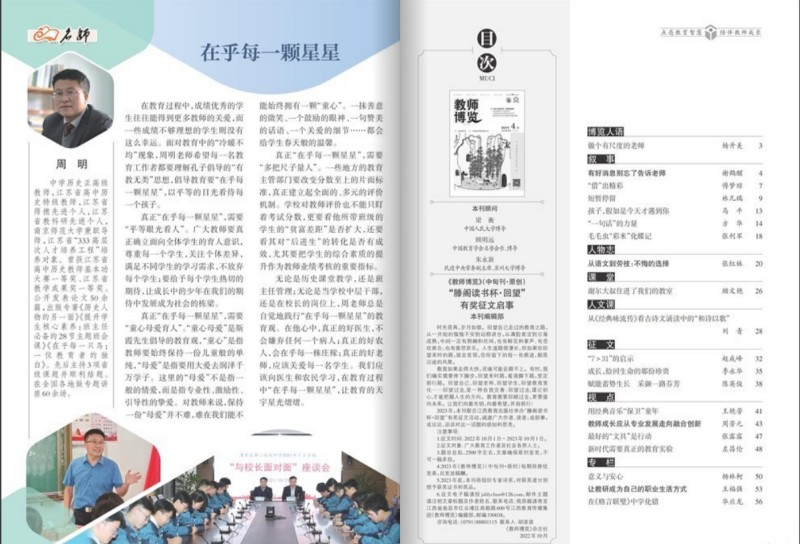 《教師博覽》(月刊)經過多年的不懈努力,流行度高,大眾辨識度廣,創刊于1993年,開拓了視野,帶給讀者富有生活特色的內容。以廣闊的視野看教育,從教師的角度看世界,幽默漫畫、對聯故事、益智游戲;加強編讀交流,溝通編讀情感。